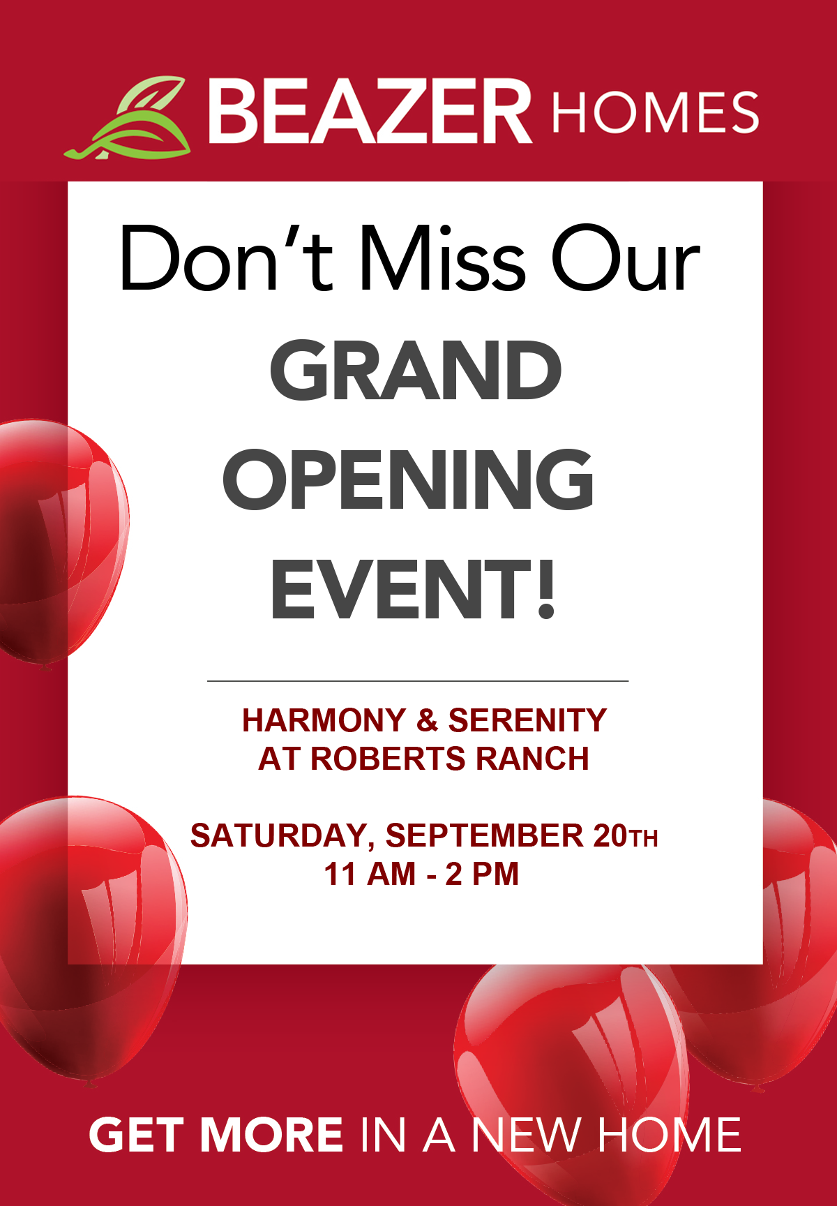 Mark your calendars for Saturday, September 20th, and come experience the harmony and serenity for yourself. Tour the stunning model homes, enjoy the festivities, and take the first step toward finding your dream home. With Beazer’s commitment to quality, innovation, and customer satisfaction, you can be confident that you’re not just buying a house; you’re investing in a brighter future.